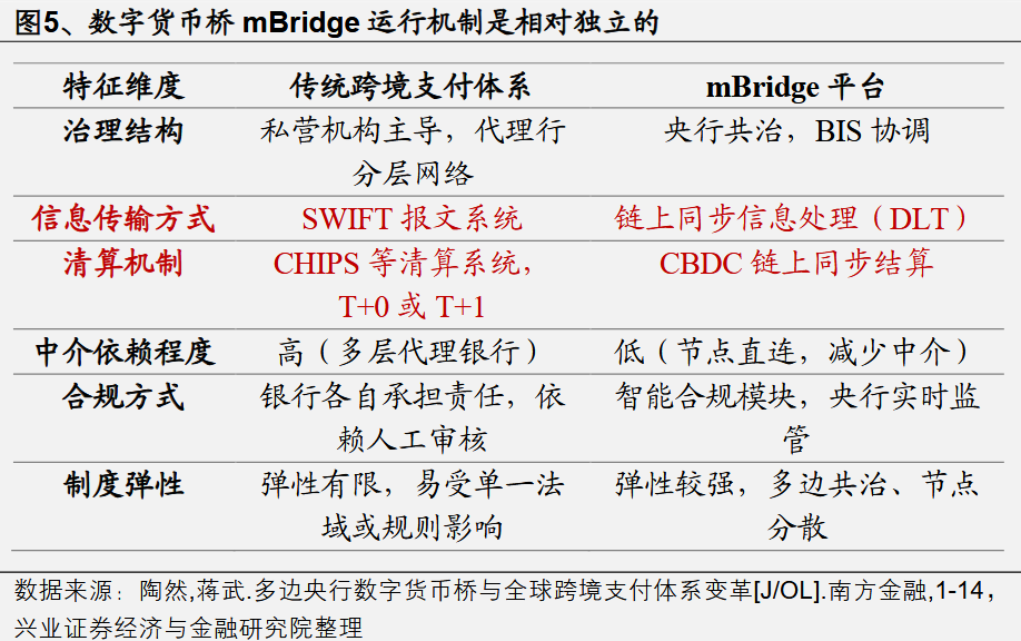 跨境支付獨立性增強,人民幣的風險溢價應壓縮。一方面,美對俄金融制裁已被證明失敗,反而成為全球「去美元化」的加速器。更重要的是,一個獨立於SWIFT+CHIPS體系的人民幣跨境支付網絡正在形成,多邊央行數字貨幣橋」(m-CBDC Bridge)項目,依託區塊鏈技術實現了跨境支付的實時清算,在底層架構上完成了對SWIFT報文的替代。因此,曾經市場所擔憂的人民幣跨境支付渠道被「卡脖子」的風險,其現實基礎已被上述體系的完善所瓦解。