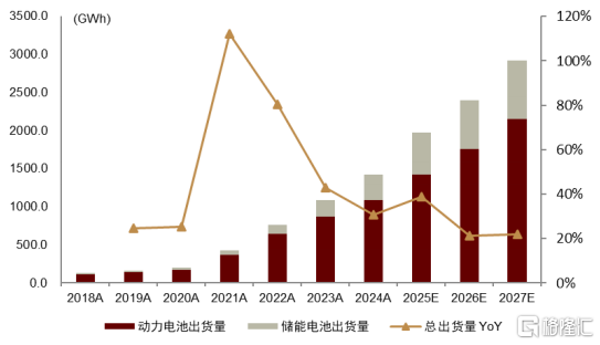 鋰電需求:預計2026年動力+儲能電池出貨同比增長20-30%