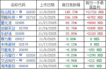 儘管11月港股打新熱情居高不下,但新股首日掛牌表現卻與申購熱度形成強烈反差,當月上市的11只新股中,首日破發個股接近半數,賺錢效應大打折扣。自動駕駛「雙雄」小馬智行、文遠知行,海偉股份、均勝電子、中偉新材集體加入破發陣營。而賽力斯的首日表現則充滿波折,開盤后一度跌破發行價,好在尾盤有資金緊急湧入護盤,最終以平收收尾,勉強避免了破發尷尬。