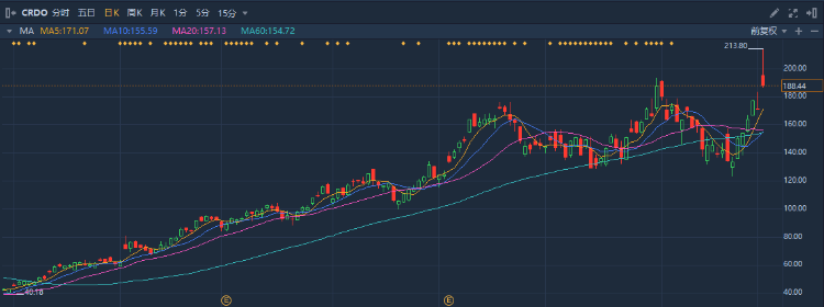 誕生於上海張江的光通信牛股默升科技(Credo Technology)在業績好於預期的推動下暴漲10.12%,並創出歷史新高。美國本土先進半導體制造「獨苗」英特爾也大漲8.65%,兩家公司帶動費城半導體指數漲近2%。飛機制造商波音則在「2026年重返正現金流」的預期推動下大漲10.15%。