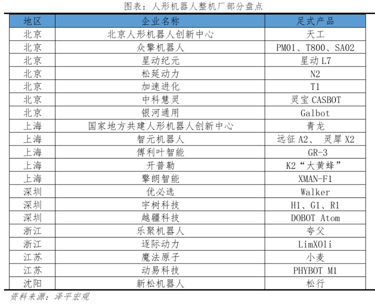 人形機器人企業「百花齊放」,市場競爭格局初步形成。整機廠商在京、滬、深等地已形成三大產業高地,同時,資本市場成為競爭的關鍵變量,繼優必選上市后,宇樹科技、智元機器人等企業也開啟了IPO進程,資本的注入將直接影響各廠商的研發投入和市場擴張速度,從而決定未來的行業排位。