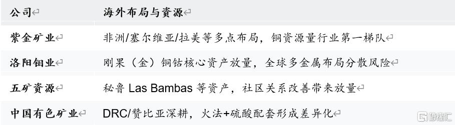 中國是全球最大的製造業產地,國內有色金屬儲量相對匱乏,如銅精礦對外依存度約 80%。為保障資源安全,我國有色央國企帶頭出海收購海外優質礦山,足跡遍佈剛果金、澳大利亞、祕魯等資源富集國。紫金礦業收購塞爾維亞 Timok 銅金礦、五礦集團拿下祕魯 Las Bambas 銅礦等,構建了自主可控的全球供應鏈體系。