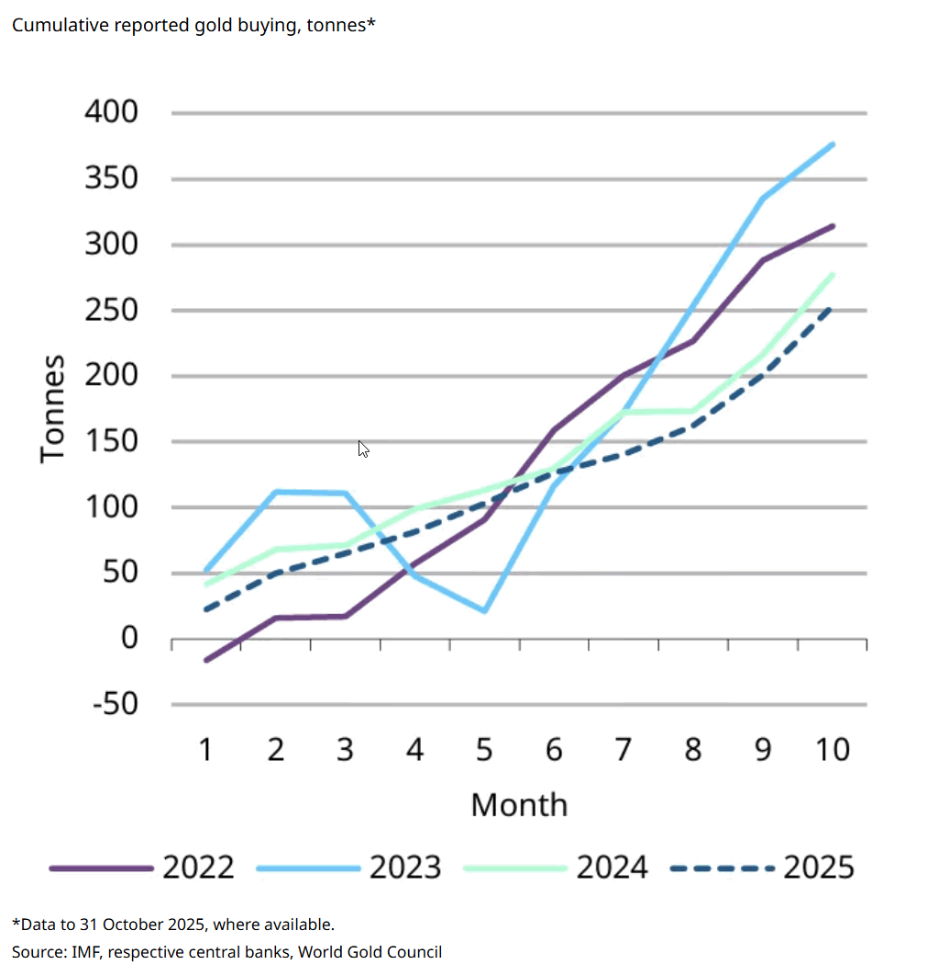 黃金需求主要由對衝美元敞口的各國央行主導,這一需求幫助金價穩固在4000美元/盎司上方。