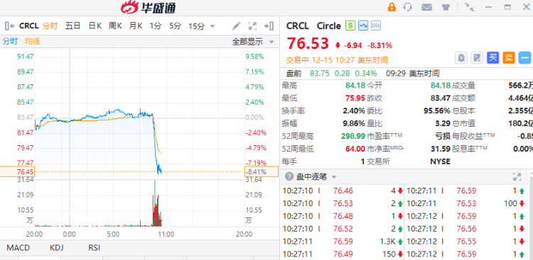 華盛資訊12月15日訊,比特幣盤中失守8.8萬美元,美股加密貨幣概念普跌,Circle $CRCL 跌8%,BitMine $BMNR 跌超7%,Strategy $MSTR 跌超6%,Coinbase $COIN 跌超5%。