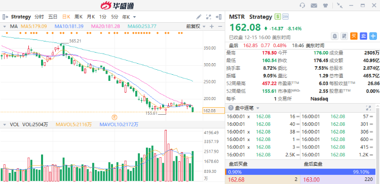 隨着比特幣跌破8.6萬美元。Strategy周一收盤重挫8.14%。