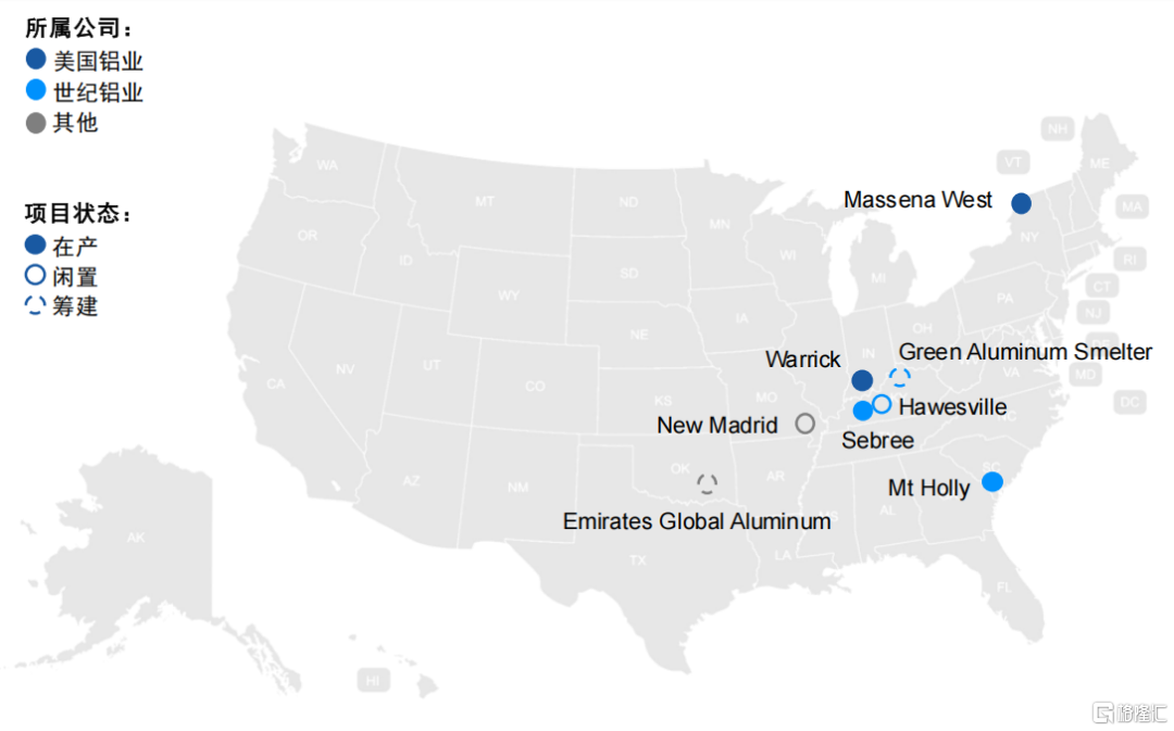 注:世紀鋁業籌建中的Green Aluminum Smelter選址仍待定(優先考慮肯塔基州)資料來源:美國國務院,Mining.com,CRU,中金公司研究部