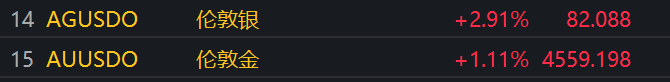 截止發稿,據同花順iFinD數據,現貨白銀日內漲超3%,突破82美元/盎司關口。現貨黃金日內漲超1%,突破4560美元/盎司。