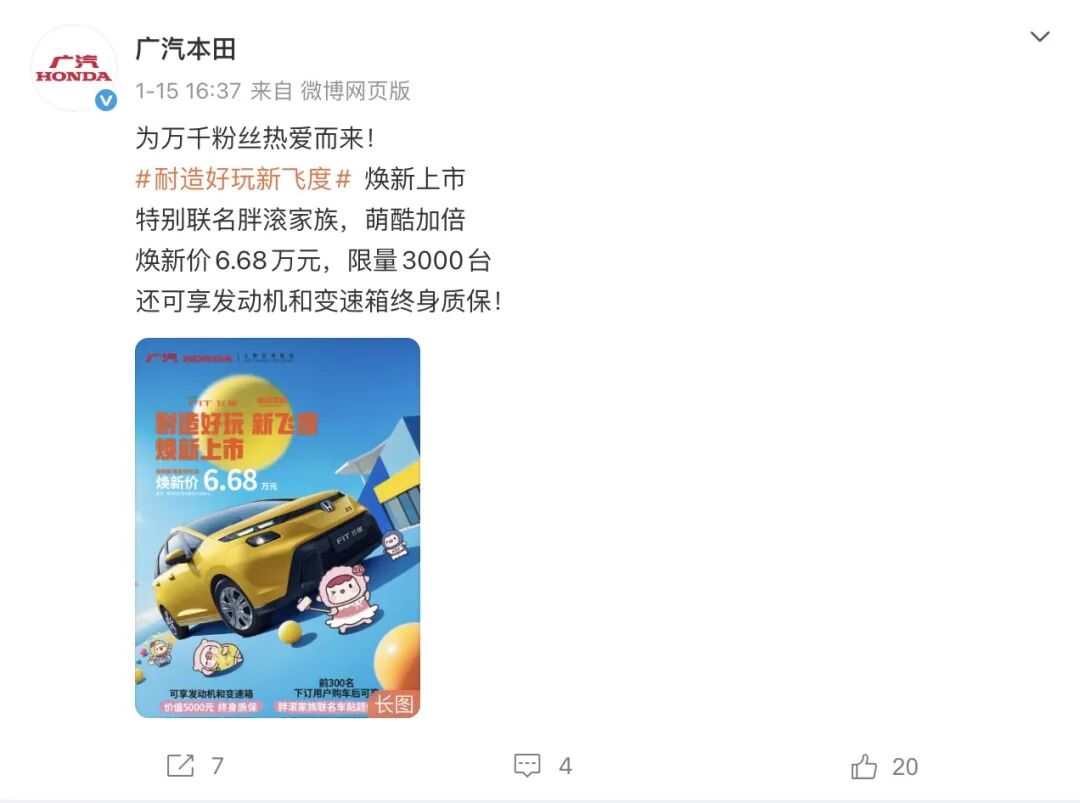 不過在微博上也有博主稱,這批 3000 台 6.68 的新飛度「已經賣完了」。