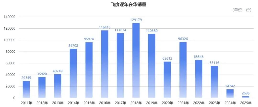 這是一個什麼概念?巔峰期的 2018 年,飛度一年能賣出 12.9 萬台。短短七年時間,銷量跌沒了 98%。