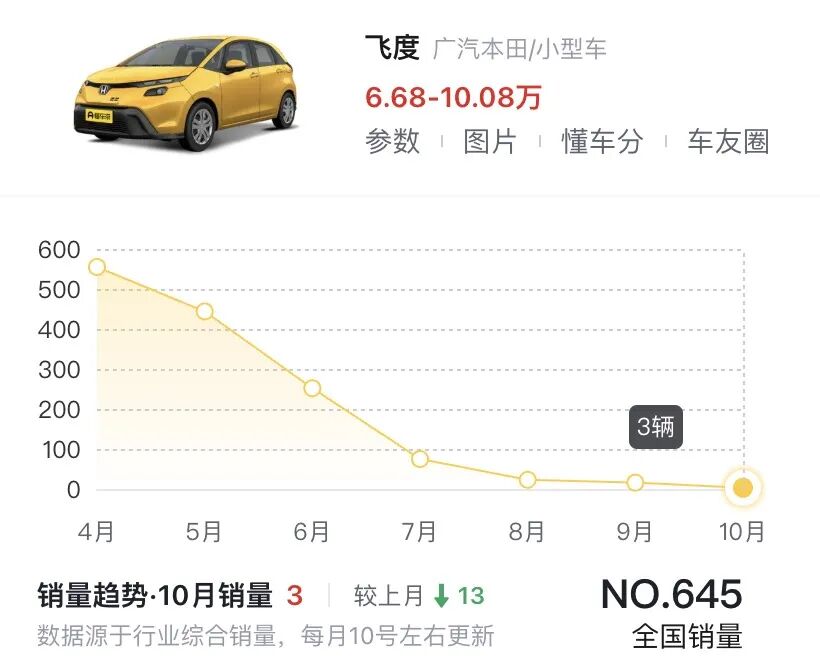 去年 10 月,飛度的全國銷量跌到 3 台 已經足夠恐怖了;但更絕的是,接下來的 11、12 月,它直接榜上無名,銷量掛 0。哪怕算上去年全年的累計銷量,一共也才賣了 2695 台。