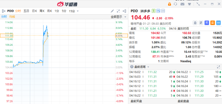 中概股盤前大漲,拼多多漲超6%,百度、嗶哩嗶哩漲超4%,阿里巴巴漲超2%。