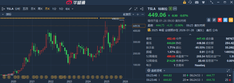華盛資訊1月26日訊,特斯拉將於美東時間1月28日盤后(北京時間周四晨間)公佈2025年第四季度財報;據彭博一致預期,特斯拉Q4營收預估為251億美元,同比微降2%;調整后淨利潤15.9億美元,同比減少38%;每股收益預估為0.34美元,同比下降49%。