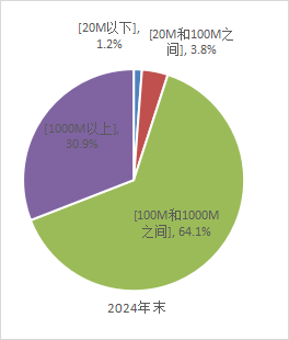 圖2-3 2024年和2025年固定互聯網寬帶各接入速率用户佔比情況