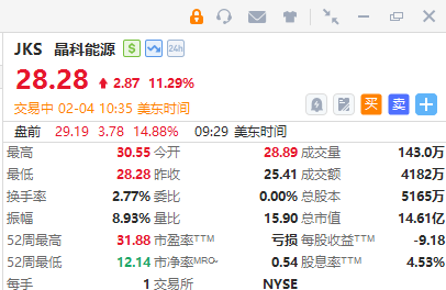 華盛資訊2月4日訊,晶科能源大漲超11%,公司澄清未與馬斯克團隊開展任何合作;
