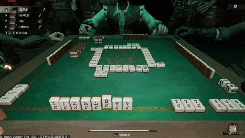 與此同時,主城中那些看似「產能溢出」的小遊戲設計,也都在承擔着調節遊玩節奏的功能。以最經典的娛樂活動「打麻將」為例,爲了契合題材調性的「無法無天」,這套玩法允許玩家在局內通過換牌獲取優勢,每個NPC還都有獨特的摸牌動作和風格。