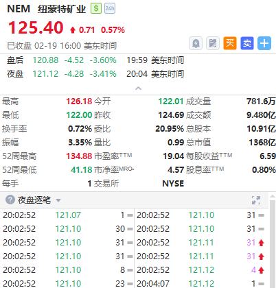 全球最大黃金生產商紐蒙特礦業盤后跌超3%,該公司周四盤后公佈的第四季度財報顯示,受黃金價格創紀錄上漲抵消產量下滑影響,其季度利潤超出華爾街預期;公司同時宣佈將投資14億美元,開發收購Newcrest后獲得的相關資產。