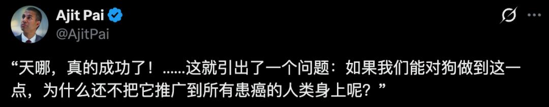如果我們能在一隻狗身上做到這一點,為什麼我們不把它推廣到所有患有癌症的人類身上呢?