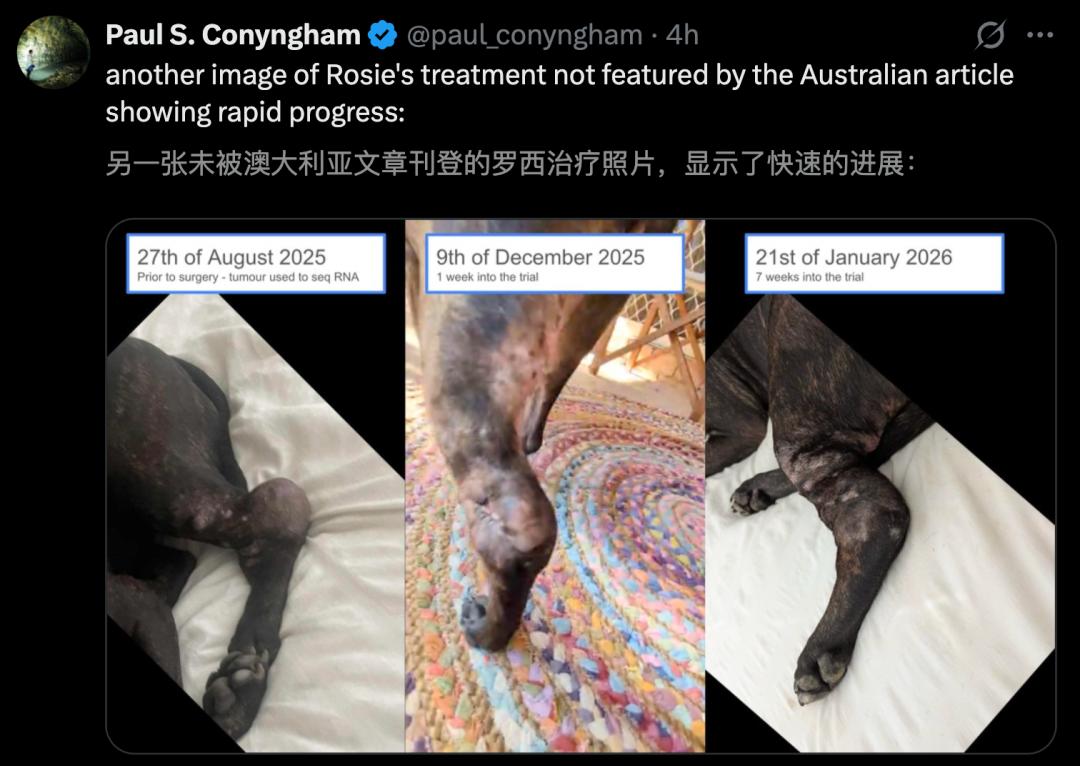 誰曾想,一位悉尼跨界大佬用AI手搓疫苗,逆天改命,救活了被確診為「癌症晚期」的愛犬Rosie。