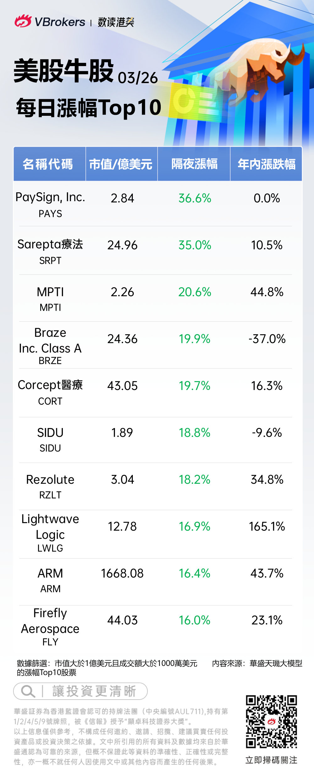 發仔梳理了每日美股漲幅Top10榜單,供投資者參考。以下為隔夜美股漲幅靠前的個股: