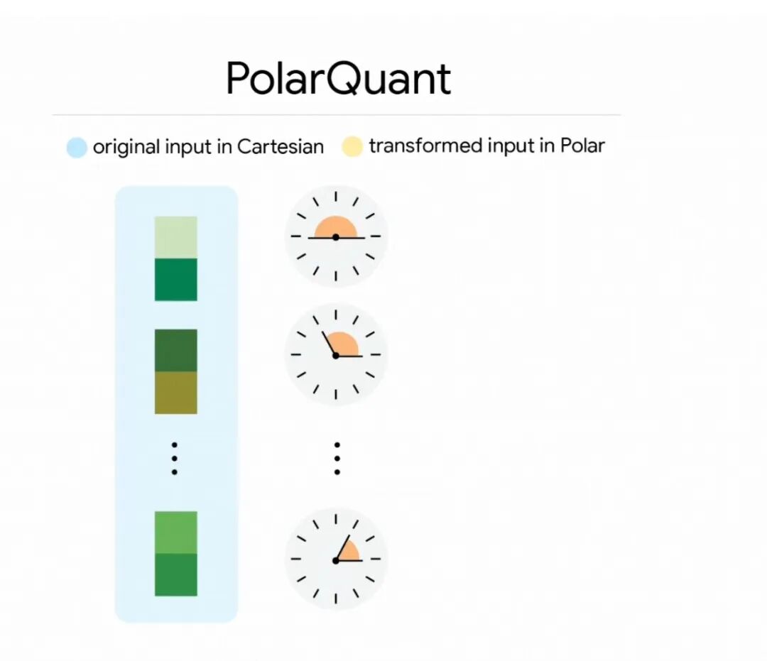 第一步,利用名為PolarQuant的方法,將數據從笛卡爾座標轉換為極座標,類似於「向東走3米,向北走4米」的指令,簡化為「以37度角走5米」。通過隨機旋轉讓數據分佈可預測,從而無需額外量化參數,直接減少內存開銷。