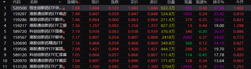 今日,創新葯板塊熱度快速飆升,創新葯ETF一度有11只漲幅超過7%。