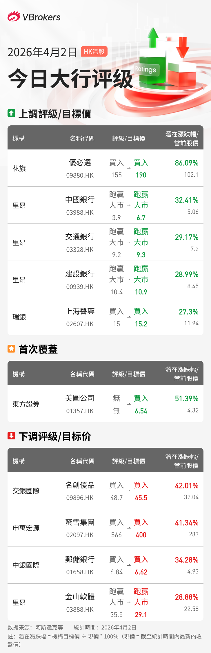 | 里昂 | 交通銀行 | 03328.HK | 上調 | $9.3 | $7.2 | 29.17% |