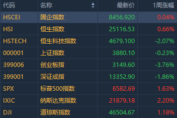 美股方面,本周道瓊斯指數周漲2.96%,報46504.67點;標普500指數周漲3.36%,報6582.69點;納斯達克指數周漲4.44%,報21879.18點;整體來看,美股股指在戰爭陰影衝擊下表現格外強勁。