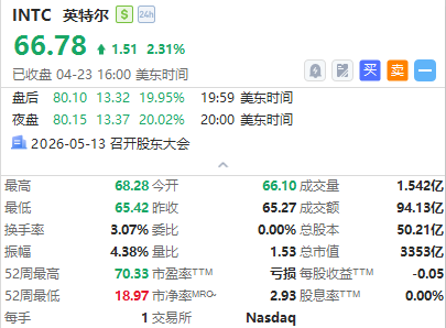 受此消息影響,英特爾股價在盤后交易中暴漲近20%,延續了近期的反彈勢頭。