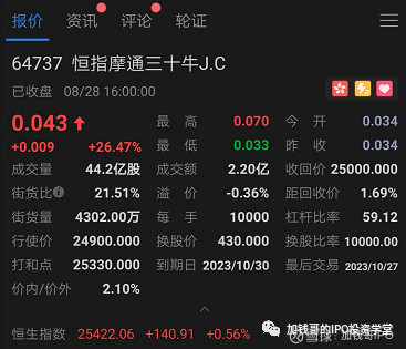 有时候上市名称会有一个英文字母附注,上例为“J”,意即同一发行人可能于市场上发行了多于一只相同资产、同于2023年10月到期的牛证,名称后加上“J、H、K”等等以作区别。