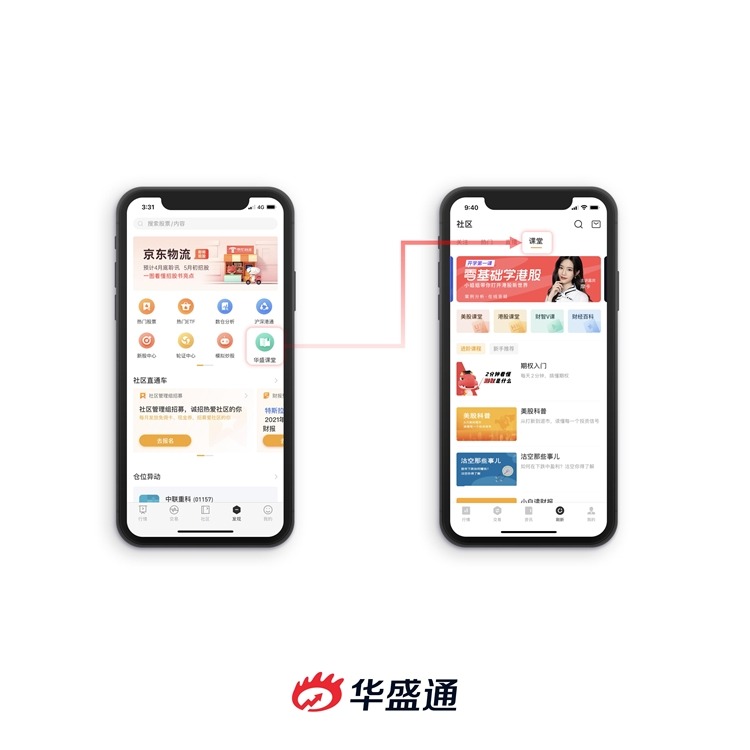比如发现页的“华盛课堂”按钮,现在转移到了“社区”页面的“课堂”栏目。