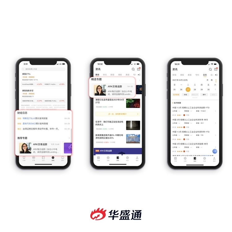 如发现页的财经日历、推荐专题,现在转移到了“资讯”页面。您可以在资讯页面右上角设置资讯栏目。