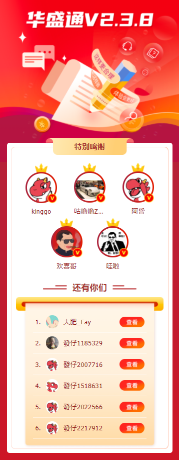 以下是2.3.8版本华盛通里程榜的鸣谢用户: