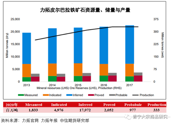 根據2020年力拓年報的披露,西芒杜(3號、4號礦區)鐵礦的資源量為27.57億噸,鐵品位為65.5%。