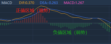 当DIF(黄线)>DEA(蓝线),即形成红柱状线(正值)
