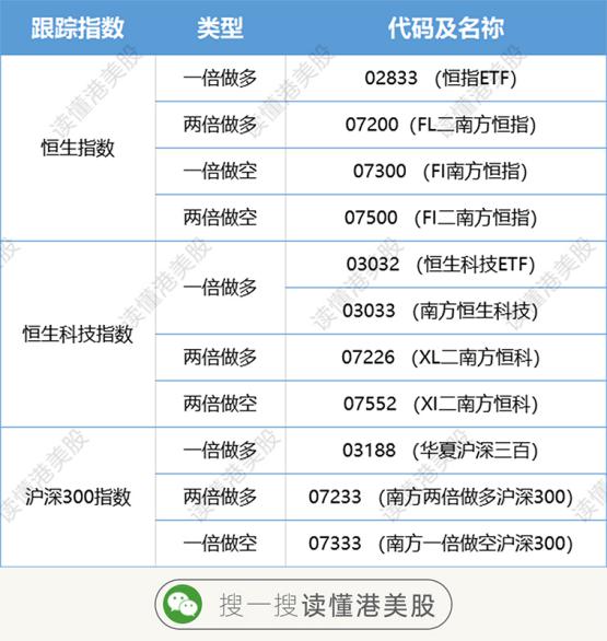 目前在港交所挂牌的多空杠杆ETF代码均以72或73开头,其中看多杠杆ETF简称以FL或XL开头,看空杠杆ETF简称以FI或XI开头。