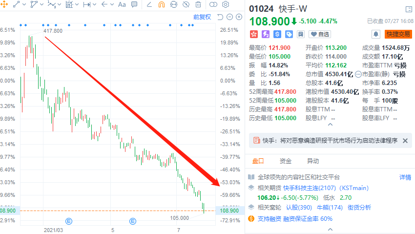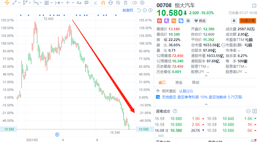 我们可以来看一下快手和恒大汽车的股价图,早期做空的投资者,现在应该是赚的盆满钵满了。