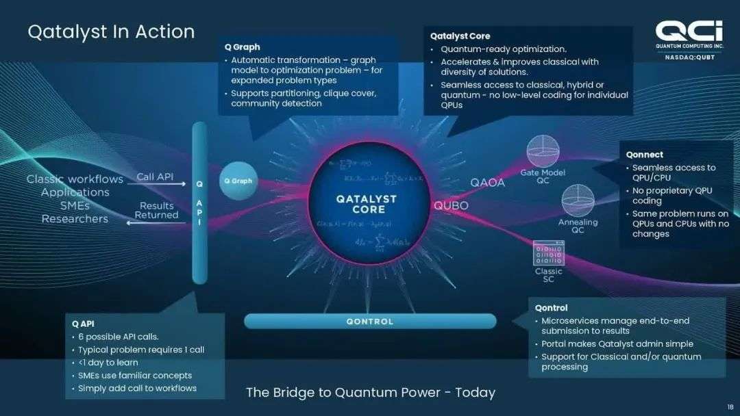 该公司的旗舰产品“Qatalyst”是一项突破,可以通过提供低风险、高回报的途径为合作伙伴提供先发优势,利用量子计算为客户解决关键优化问题。Qatalyst六个简单的应用程序接口(API)函数调用是组织需要解决复杂优化问题的选择。