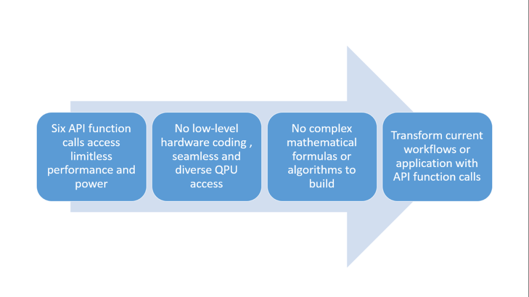 然而,使用简单的Q API调用,用户、工作流或应用程序可以立即使用它们现有的构造将问题提交给Qatalyst。所有这些都需要学习API,这可以在一天内学会,提交量子问题,并处理结果。整个过程最多需要一个星期。这为需要实时解决复杂问题的大型组织创造了即时价值。