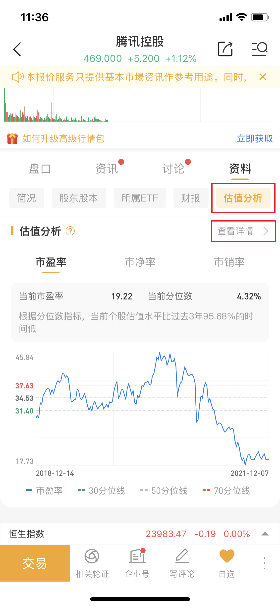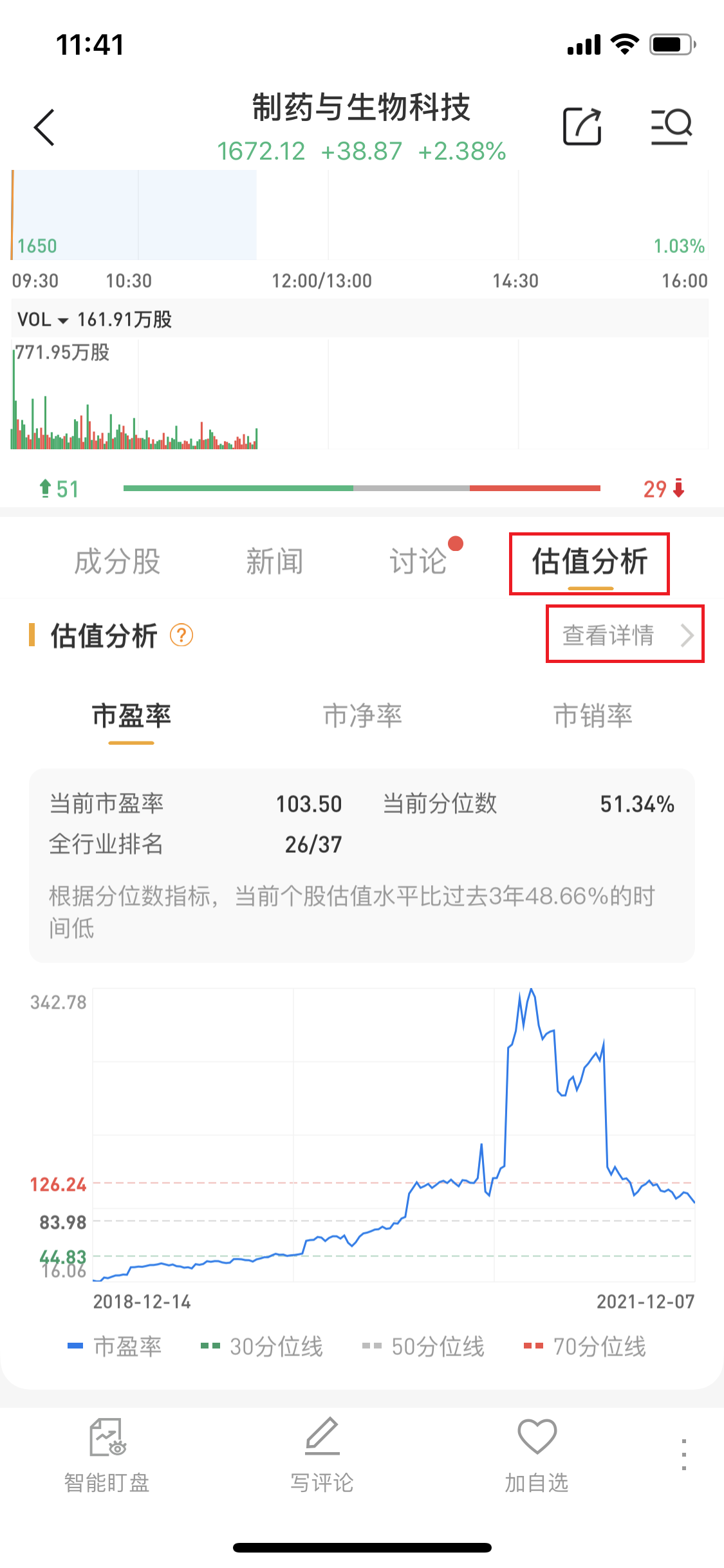 估值分析首页展示不同行业间的市盈率、市净率和市销率的对比,点进行业详情页可以发现行业历史数据对比和在全行业的排名,下方也有该行业里各成分股的对比;个股页也会展示公司历史数据对比,公司在同行业中排名以及近三年的历史回测数据。