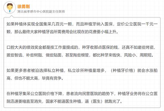 种植牙集采后,是否会出现私转公回流的情况?这一点不妨听听公立医院的医生怎么说: