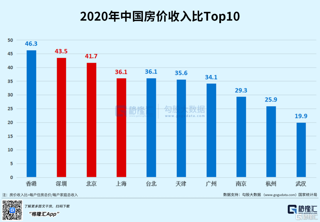 2020年Numbeo的数据显示,深圳,北京两地房价收入比超40。这意味着,在深圳与北京买房,需要一个家庭不吃不喝工作超40年才能购入一套房产。