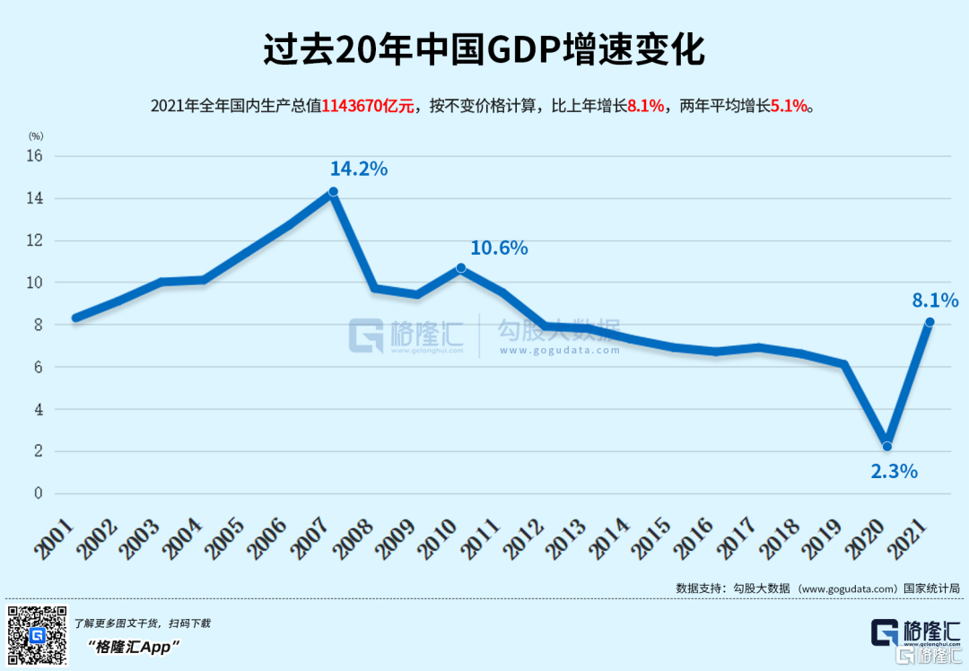 可喜的是,2021年中国GDP同比增长8.1%。要知道,2020年中国GDP才突破百万亿,以这样的庞大身躯,又迈出这么一大步,着实不容易。