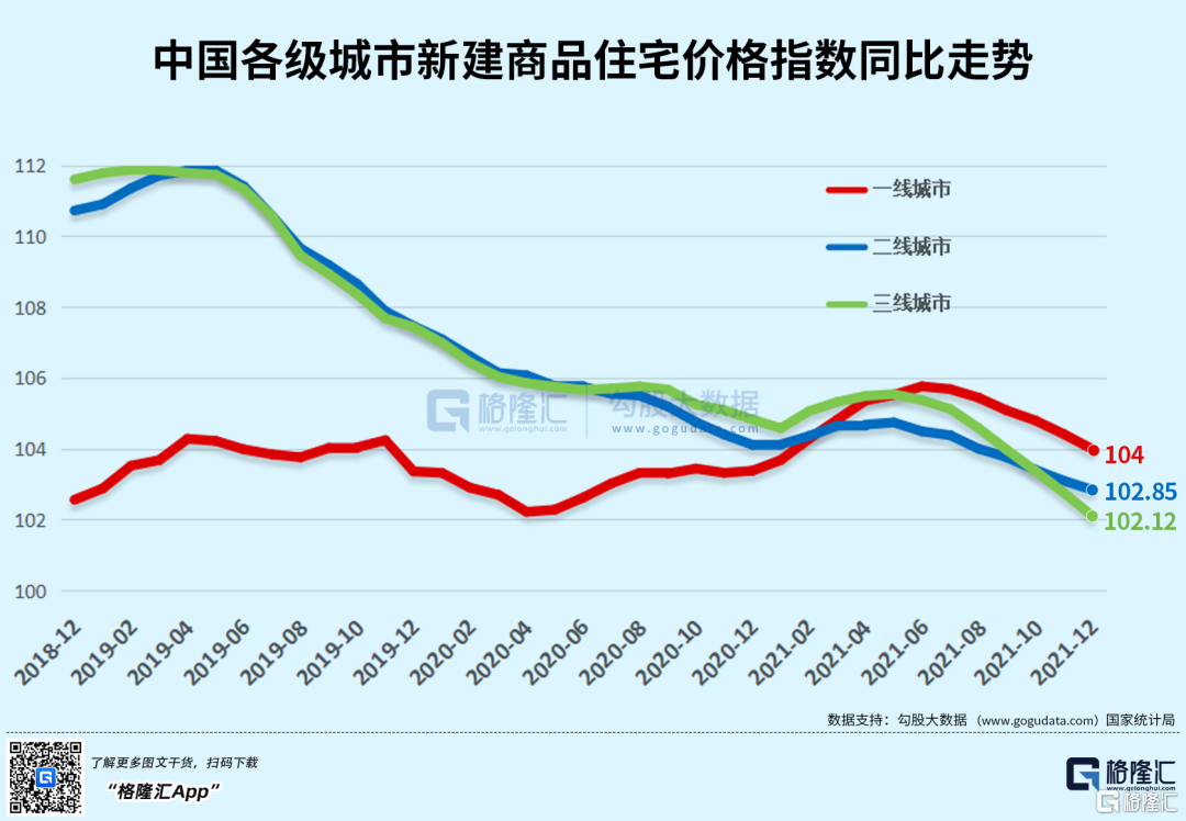 当然,没有什么是大而不倒,2021年恒大轰然倒塌成为房地产行业入冬的标志性事件。在官方坚持房住不炒的基调下,房价的调控初显成效,虽然不能解决燃眉之急,但各线城市价格增速均有所放缓。