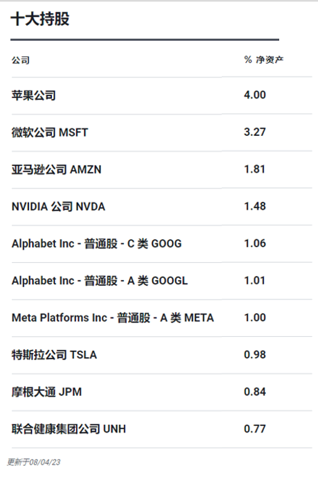作为首个美国 ETF 的推出(于 1993 年 1 月 22 日上市)。由于其先发优势,该 ETF 的管理资产(AUM)非常高,约为 4200 亿美元。由于其高流动性,想要探索期权交易等高级策略的投资者可以利用 SPY,同时仍受益于其低成本的指数结构。目前,该 ETF 的费用率为 0.0945%,30 天买卖价差中值为零。股息水平大致在1.64 美元(每季)