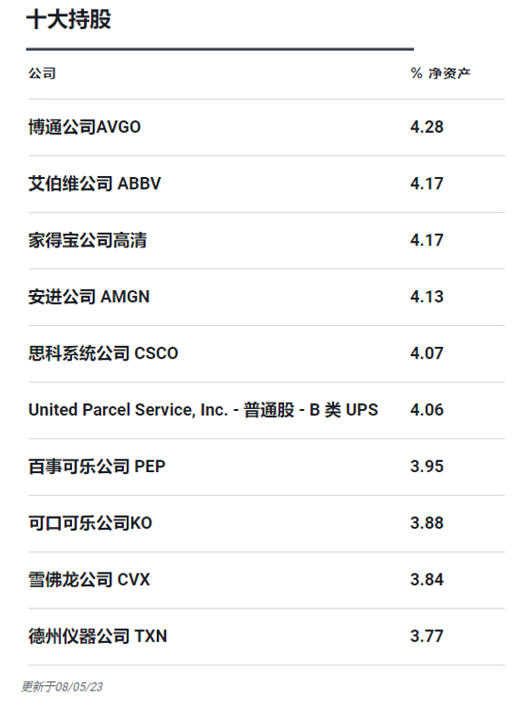 SCHD 指数选择了约 100 只股息股票的投资组合,并筛选了质量特征,包括股息增长、自由现金流和股本回报率指标。与主动管理的股息 ETF 相比,SCHD 指数严格的基于规则的性质,有助于保持较低的费用和较高的透明度。目前,该 ETF 的 30 天 SEC 收益率为 3.6%。
